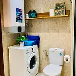 Guests can take advantage of conveniences such as an iron and ironing board, and air conditioning, as well as entertainment options like a flat-screen TV with satellite channels. This apartment is also furnished with a sofa. For your comfort, you will find a separate toilet and a shower. Furthermore, the bathroom boasts a hair dryer, bath sheets, and slippers.